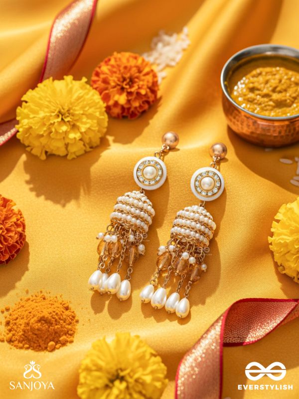 Aindava - The Moonlit Orbits - Stones, Beads And Pearl Drops Hand Embroidered Earrings