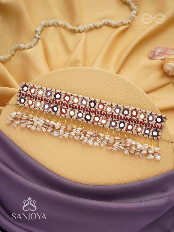 Revata - Hues Of Ocean - Mirror And Resham Hand Embroidered Neckpiece